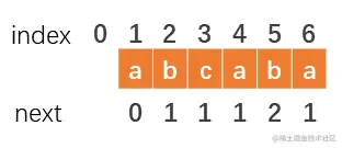 数组,也叫作失效数组。当模式串匹配到第j位不匹配时,就让模式串直接回到位置next[j]