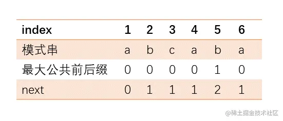 最大公共前后缀与next值关系如下