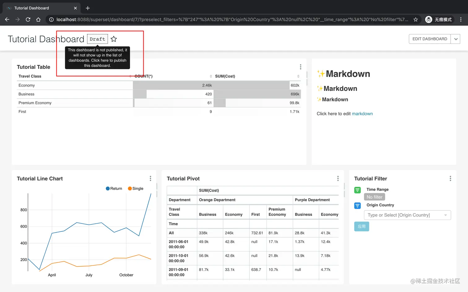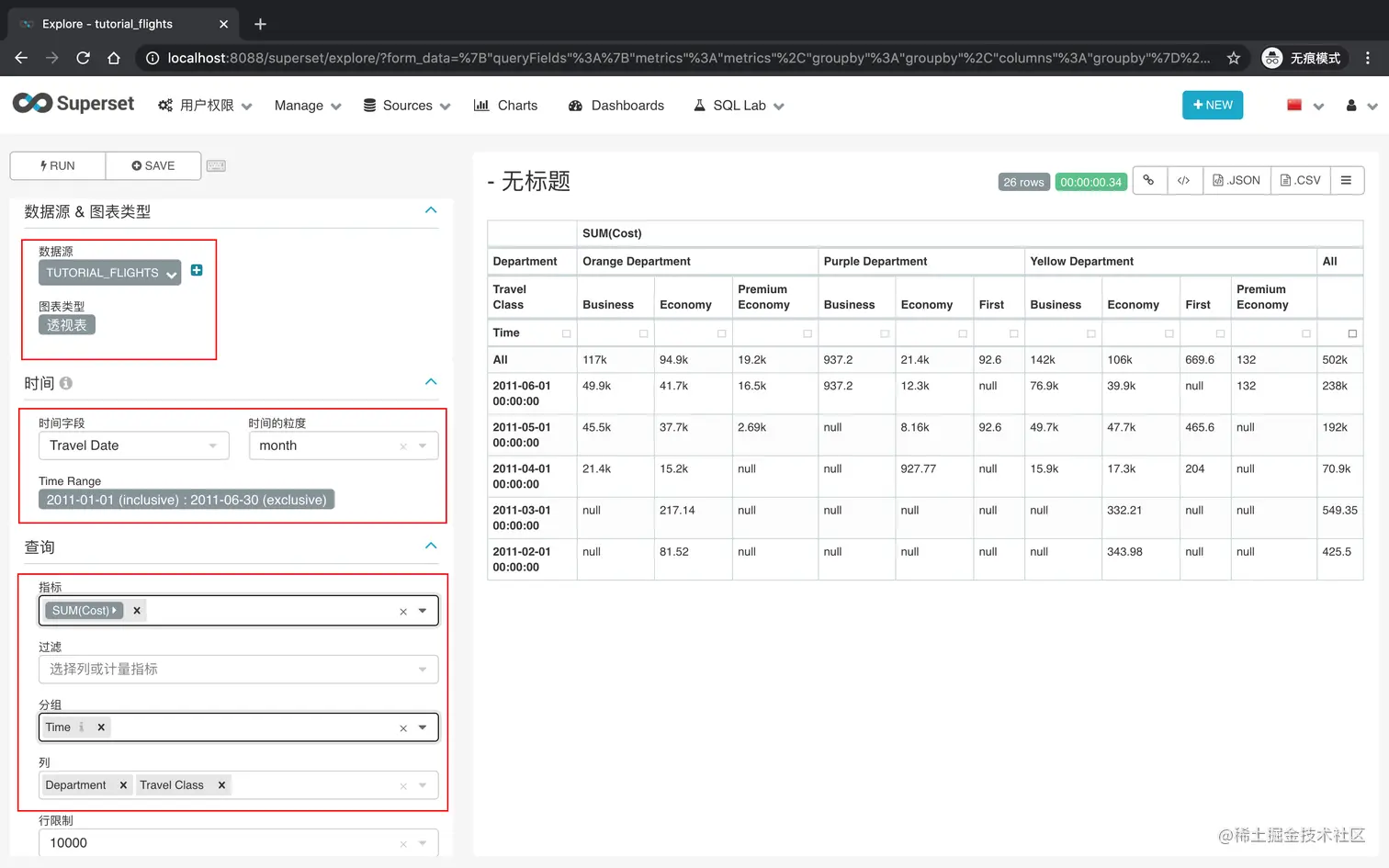 在本教程中,我们将通过研究一个真实的数据集来介绍 Apache Superset 中的关键概念,该数据集包含一个英国组织的员工在2011年的飞行。每趟航班的信息如下: