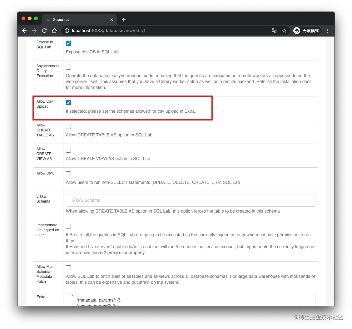勾选 Allow Csv Upload
