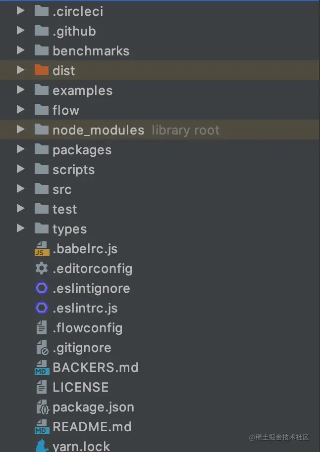 学习Vue的源码的前提就是你需要先从Github上克隆该项目,当你下载完后你会看到下面这个截图。下面先从目录开始。