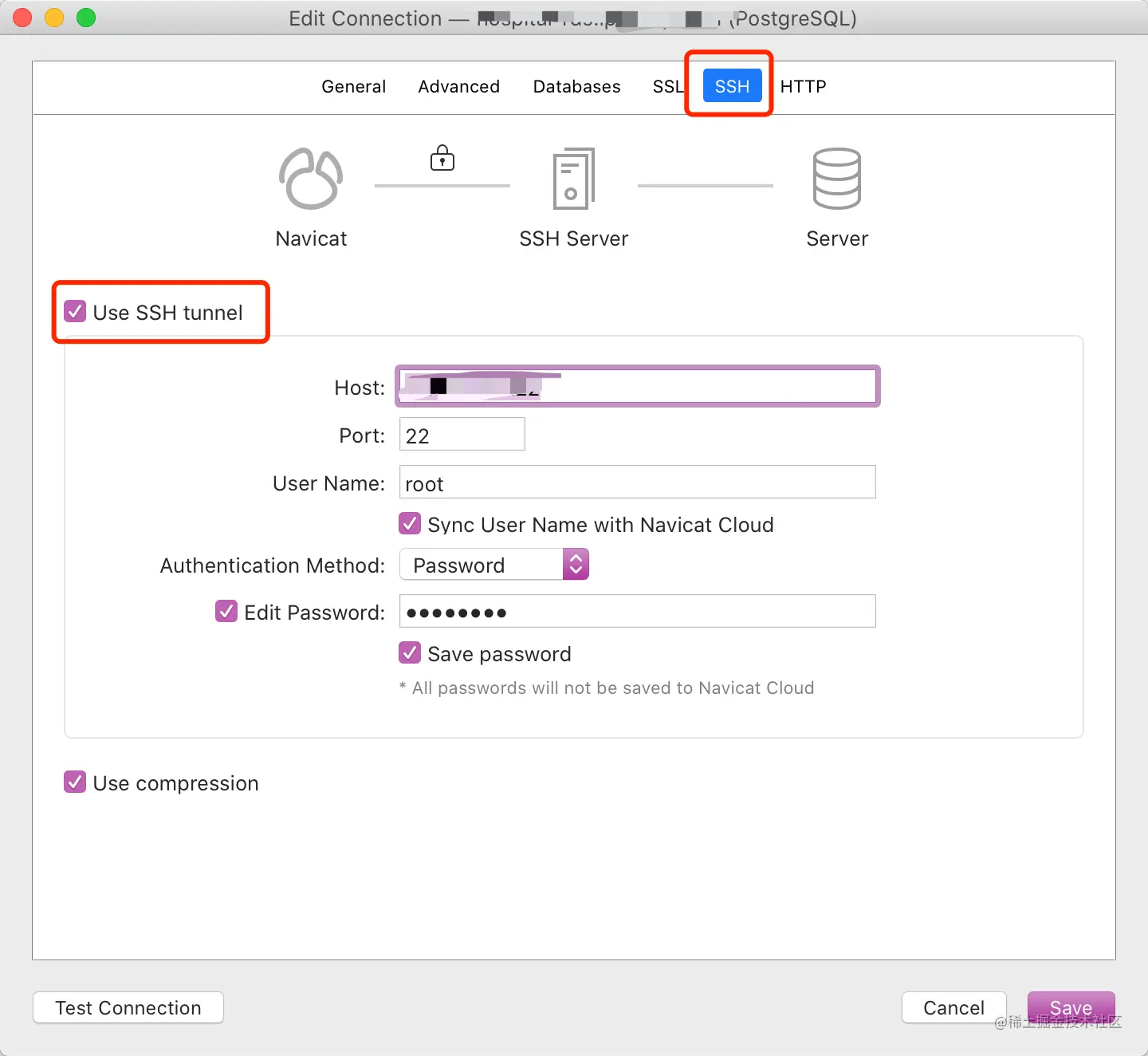 可视化工具是可以直接配置跳板机的,配置方法大同小异。