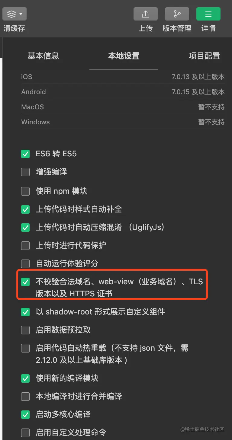 注: 17:34:51.509 1. 可以通过微信开发者工具切换pages.json中condition配置的页面,或者关闭微信开发者工具,然后再从HBuilderX中启动指定页面 17:34:51.535 2. 如果出现微信开发者工具启动后白屏的问题,检查是否启动多个微信开发者工具,如果是则关闭所有打开的微信开发者工具,然后再重新运行 17:34:51.560 3. 运行模式下不压缩代码且含有sourcemap,体积较大;若要正式发布,请点击发行菜单进行发布