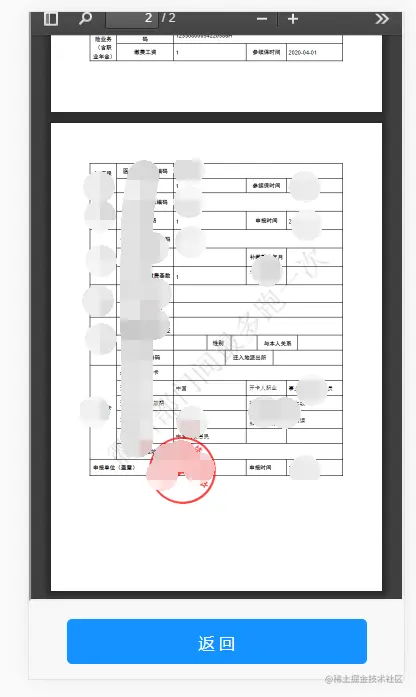 **总结:**使用vue-pdf好处就是简单,包小,如果应用在网络环境比较好的情况下,还可以使用CDN引入,这样可以减小打包后文件的大小。但是有个一直没有解决的问题是无法显示电子签章。使用pdf.js,增加了打包的容量,base64的数据需要做处理,viewer.html的路径也需要根据实际环境进行调整,但是有个非常明显的优势就是,功能强大,中文、水印、电子签章都能很好地显示出来。