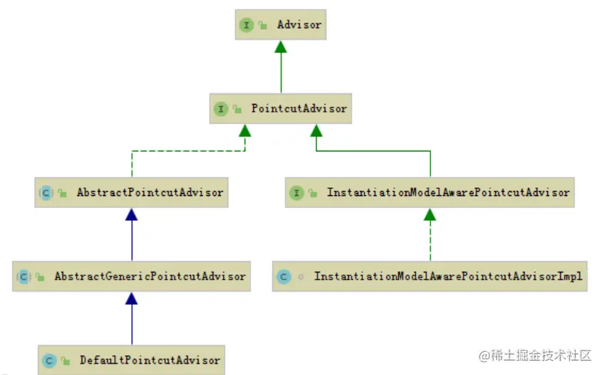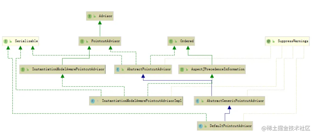 - 绿色虚线箭头是指接口实现关系