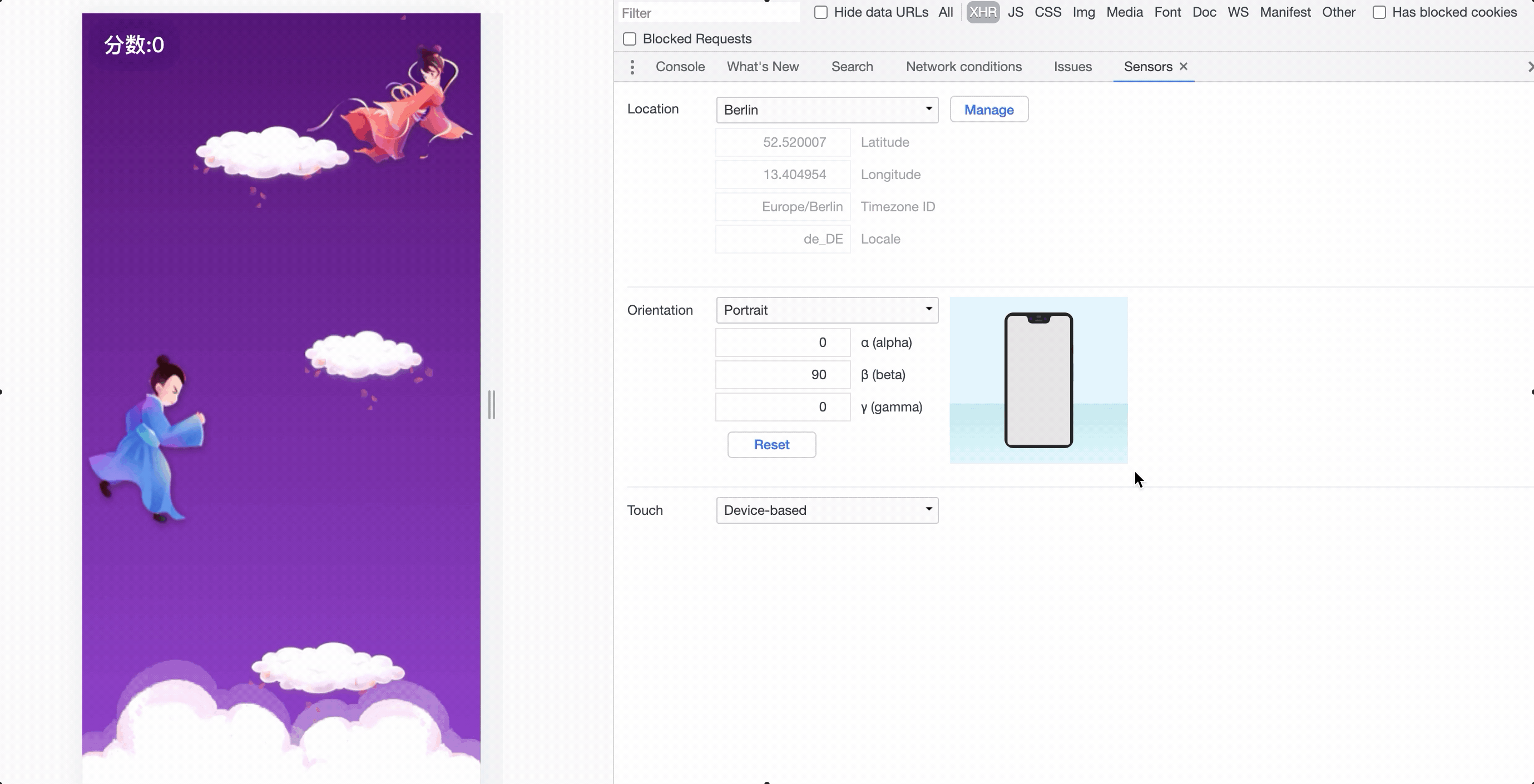 可以通过charles 中 map remote设置http映射为https,这样ios就可以在手机上获取陀螺仪权限。我们在调试的时候需要在屏幕上打一个参数类似这种,方便我们直观的看到具体参数。
