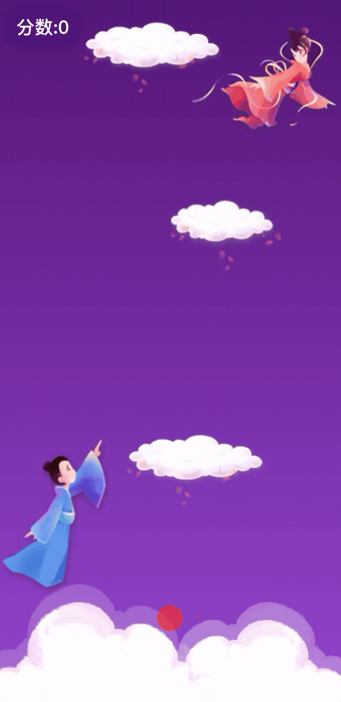 牛郎通过踩云彩往上跳的方式,与织女牵手。