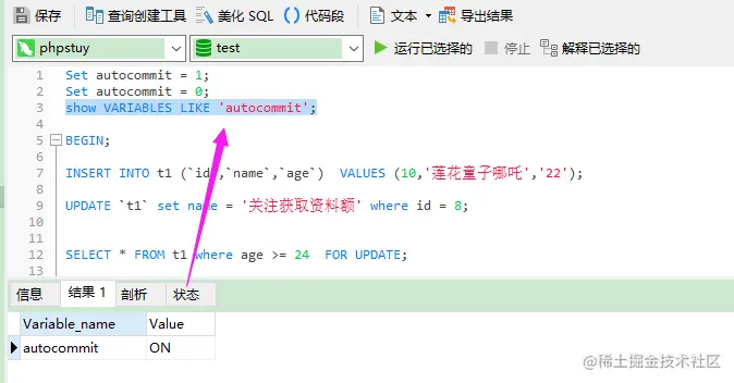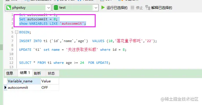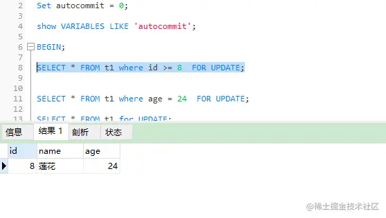 select * from t where id=1 for update;锁定 id =1的记录 -