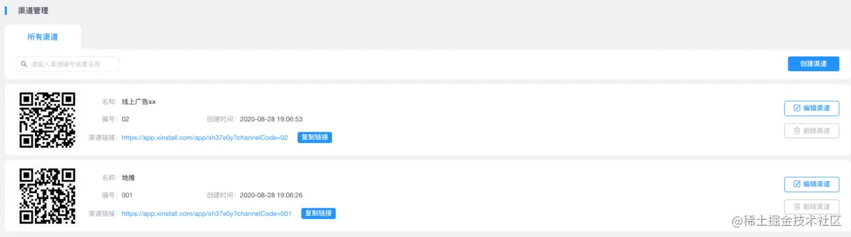 创建Xinstall的渠道以及生成专属渠道二维码和链接