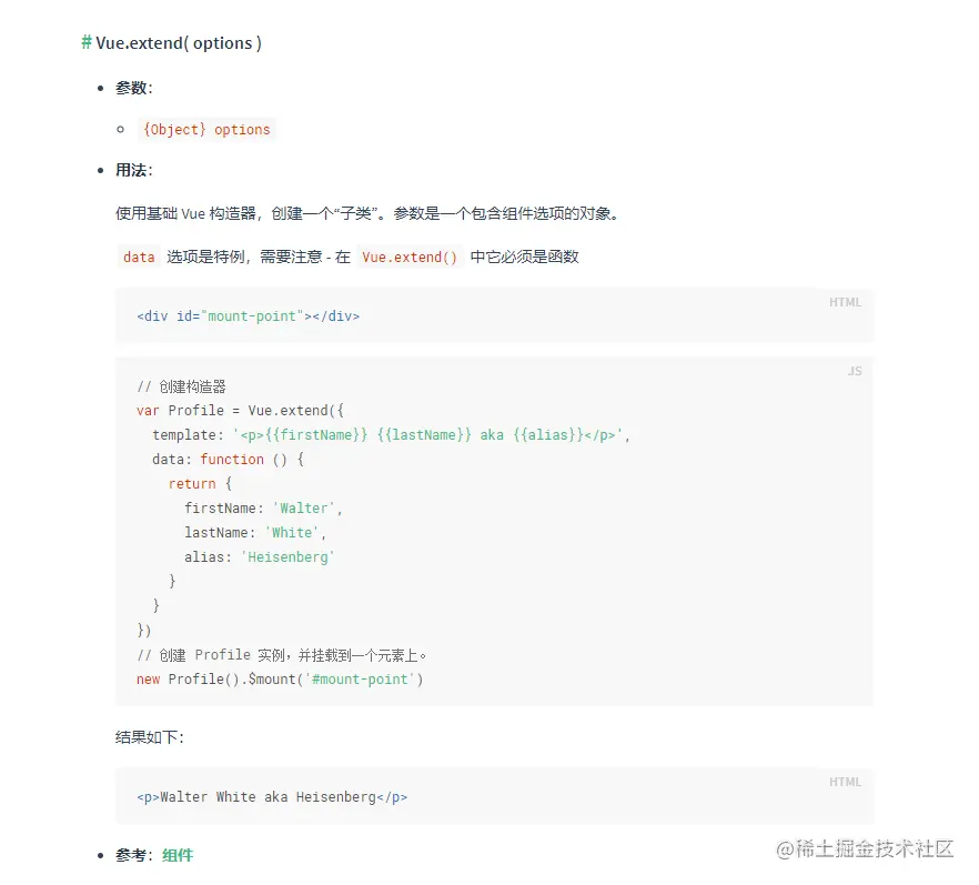extend:可以理解extend是用于创建一个组件的实例