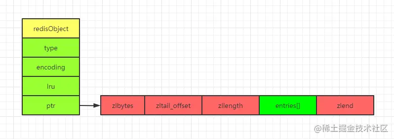 List对象得编码可以是OBJ_ENCODING_LINKEDLIST和OBJ_ENCODING_ZIPLIST及OBJ_ENCODING_QUICKLIST,其中OBJ_ENCODING_LINKEDLIST基本已经被QUICKLSIT取代了。 使用zipList作为底层结构,对象头ptr指针则会执行一个zipList数据结构,则每个压缩列表节点(entry)保存了一个列表元素。 使用LinkedList作为底层实现,每个双端链表节点(node)都保存了一个字符串对象,而每个字符串对象都保存了一个列表元素。