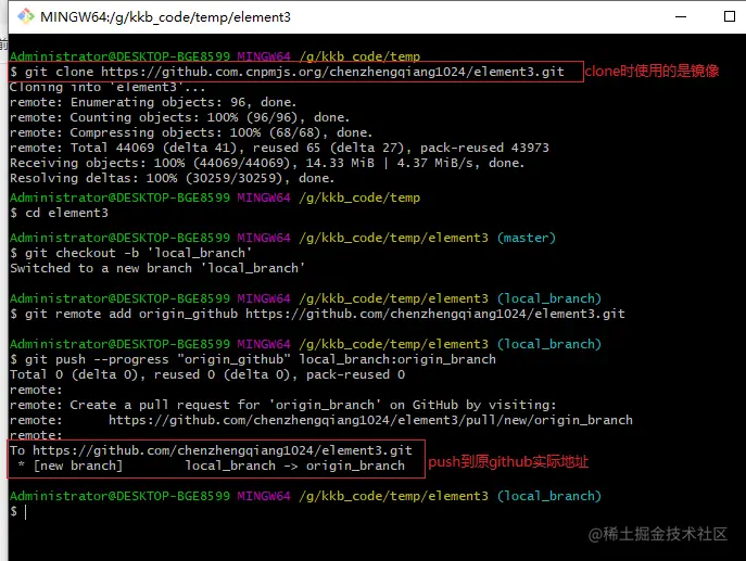 2. 提交代码时指定原github地址
