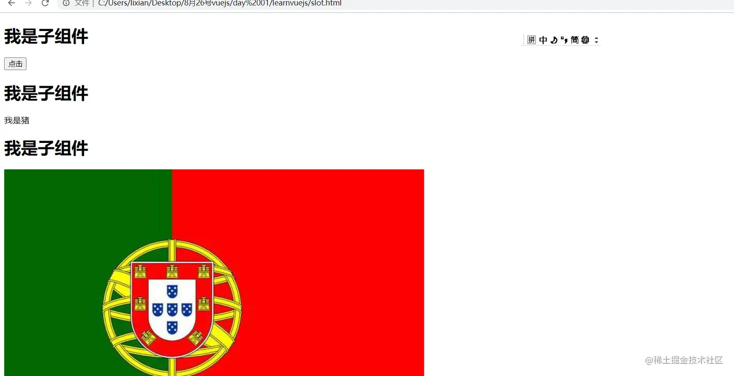 一个组件可能不只有一个插槽,比如说我这里有三个插槽: