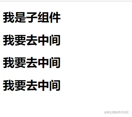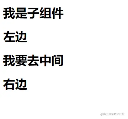 <h1>我要去中间</h1>//定义的是所有不具名插槽的显示内容