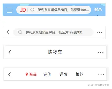 移动端的导航栏明显不是一摸一样的,在不同的页面都会存在细微的差别。但是他们大体结构上完全一致。如果我们将每个页面的导航栏封装成一个独立的组件,又显得很浪费。感觉没有必要。那我们该怎么做呢?