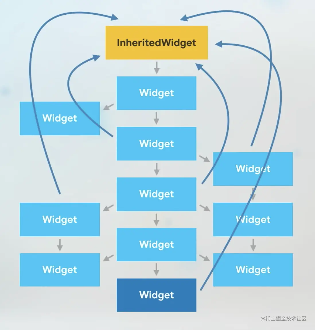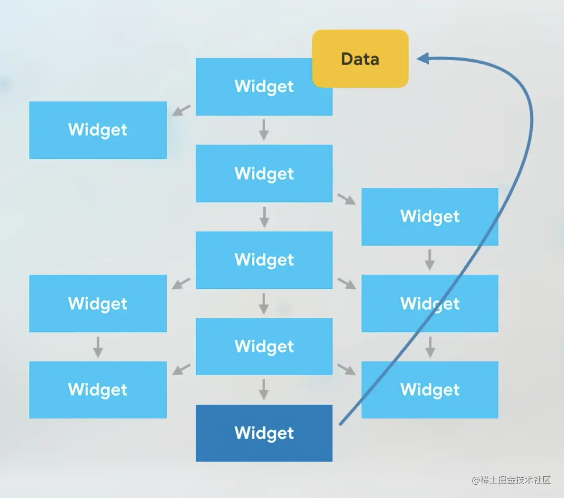 当Child Widget想要跨Widget拿到其它Widget的数据时,通常就需要使用构造函数,将数据一层层传递到Child Widget,这显然不是一个好的解决方案,不仅让Widget之间有了很大的耦合,也产生很多的冗余数据。