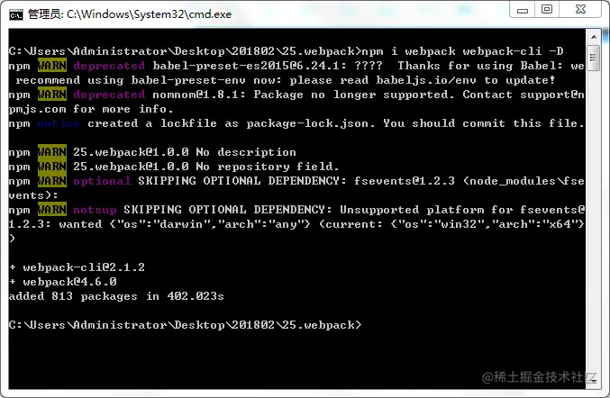 webpack一般开发中使用,上线的时候不需要,webpack4中除了正常安装webpack之外,需要再单独安一个webpack-cli (npm i webpack webpack-cli -D)