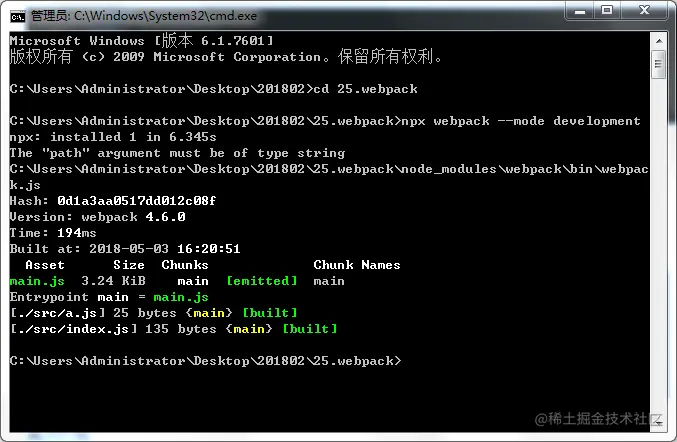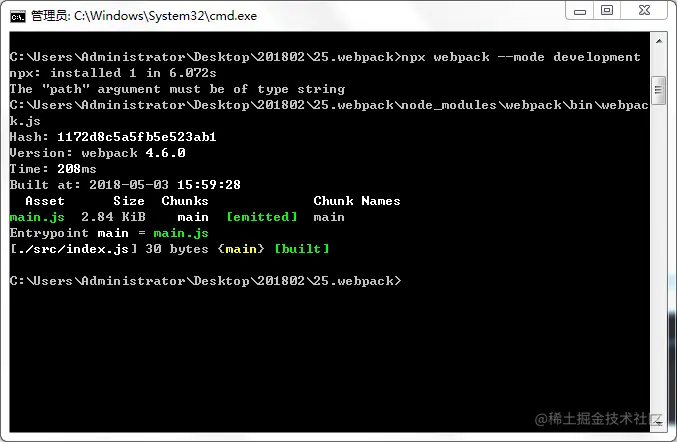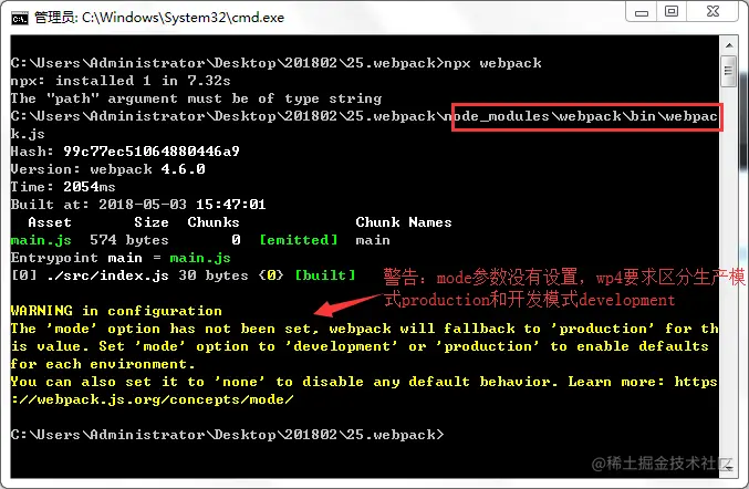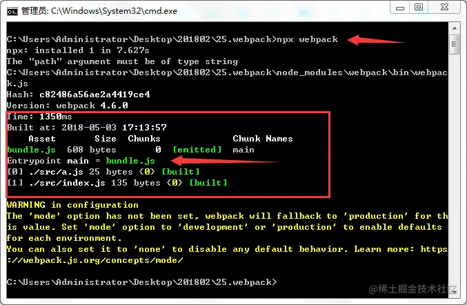 npx webpack // 不设置mode的情况下 打包出来的文件会自动压缩(默认是生产模式)
