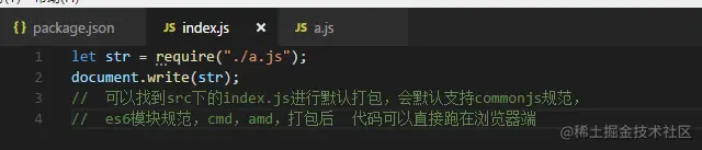 3、index.js 引用a.js (默认就支持node的写法 自动转化;默认支持各种模块化)