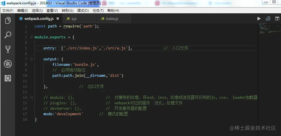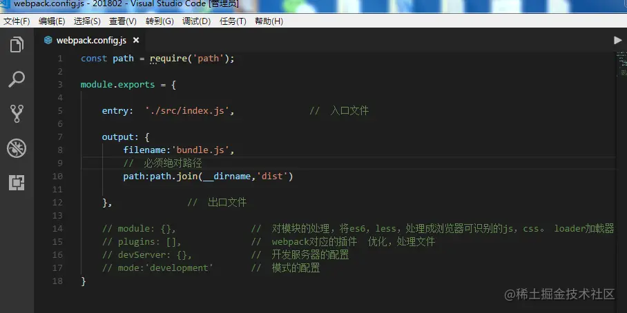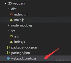 0配置自动打包的main.js index.js名字是默认规定好了的,不能改名,不然报错,这个时候需要到当前项目根目录下建立一个webpack.config.js(默认情况下就叫webpack.config.js 可修改)。