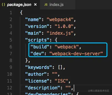工作当中我们打包编译的时候一般不会执行npx webpack这样的命令,都是执行npm run dev这样的命令,既然是通过npm执行的命令,我们就应该找到package.json里的执行脚本去配置一下命令。