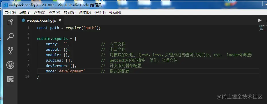 在项目下创建一个webpack.config.js(默认,可修改)文件来配置webpack