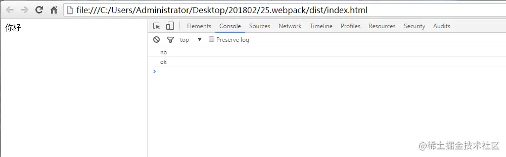 再次 npx webpack --mode development 打包,打包成功后找到index.html 浏览器打开显示 hello 就能看到打包成功啦。