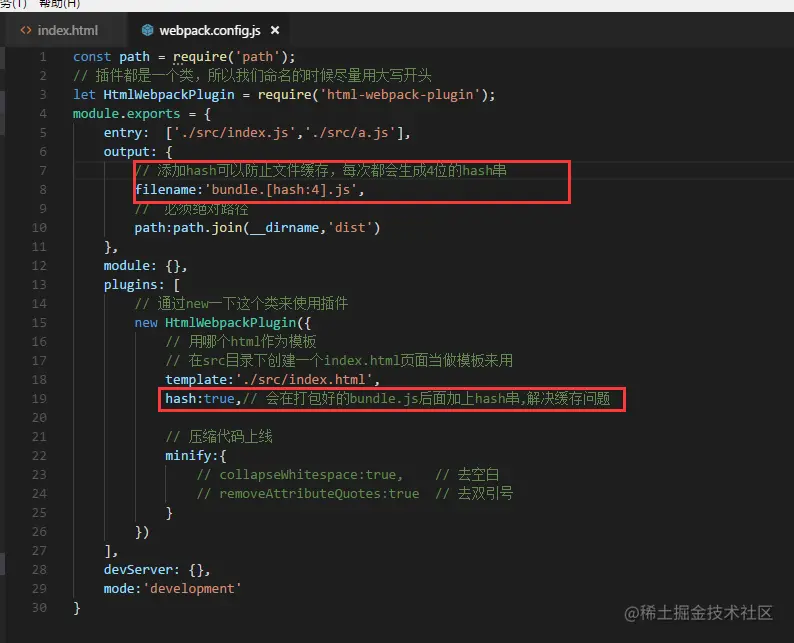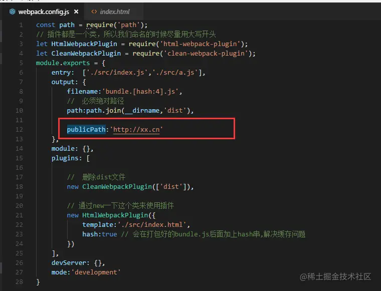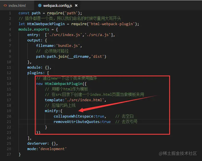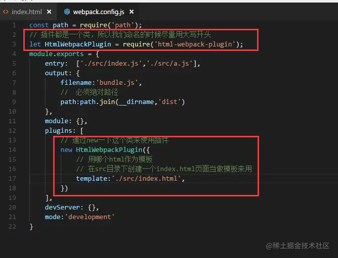这就需要安装一个常用的插件了,html-webpack-plugin
