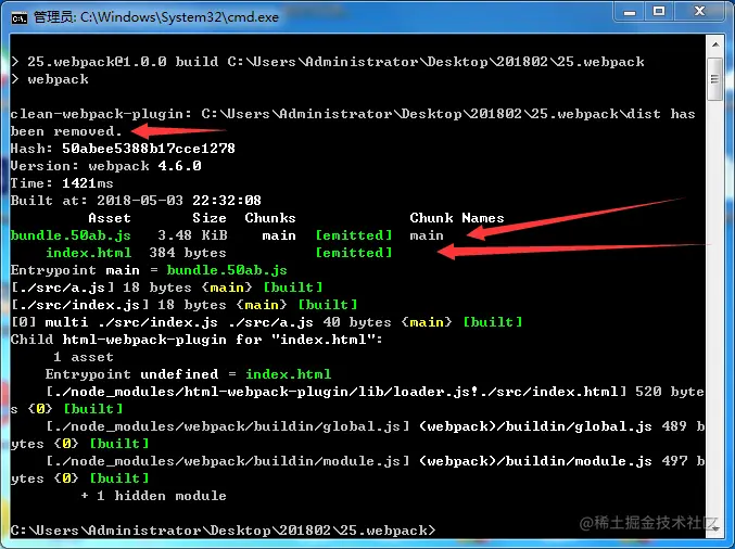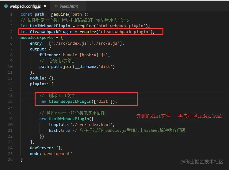 由于每次打包,会产生不必要的文件,这时候我们需要清空文件插件 clean-webpack-plugin