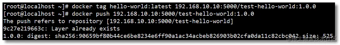docker tag hello-world:latest 192.168.10.10:5000/test-hello-world:1.0.0