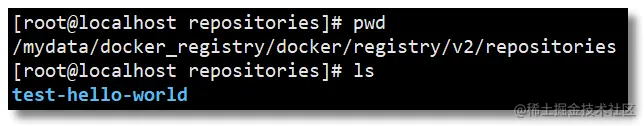由于我们做了目录挂载,因此可以在宿主机 /mydata/docker_registry/docker/registry/v2/repositories 目录下查看。