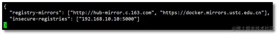 添加以下内容,用于让 Docker 信任私有仓库地址,保存退出。