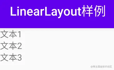 - LinearLayout里面包括了三个显示文本的TextView.