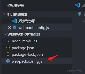 4、打开文件目录,新建 webpack.config.js 文件