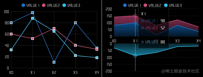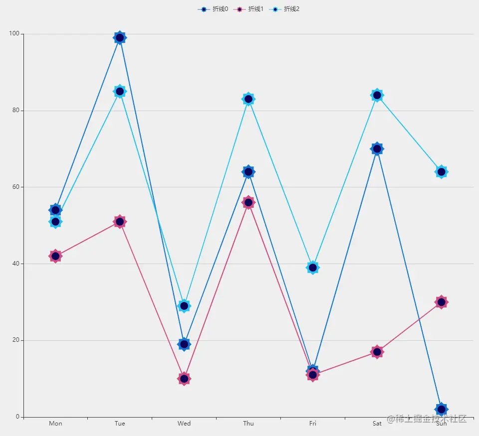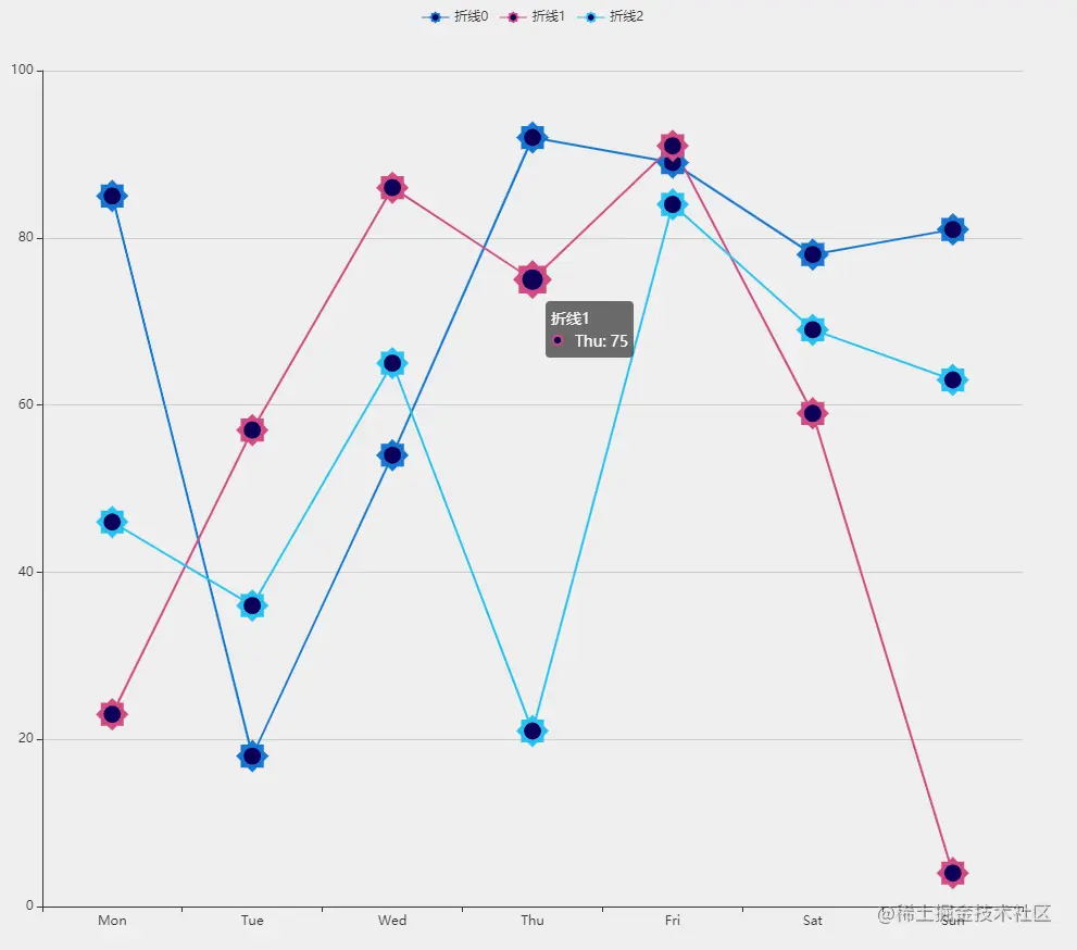 2.在折线图节点、legend和tooltip中,图标能够统一。