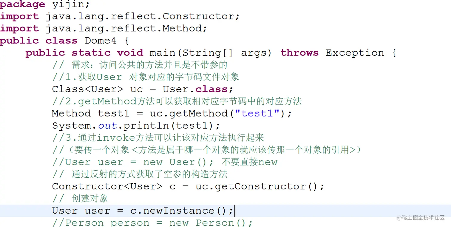 Class类的newInstance()方法是使用该类无参的构造函数创建对象。如果一个类没有无参的构造函数, 就不能这样创建了。可以调用Class类的getConstructor(String.class,int.class)方法获取一个指定的构造函数。然后再调用Constructor类的newInstance("张三",20)方法创建对象。