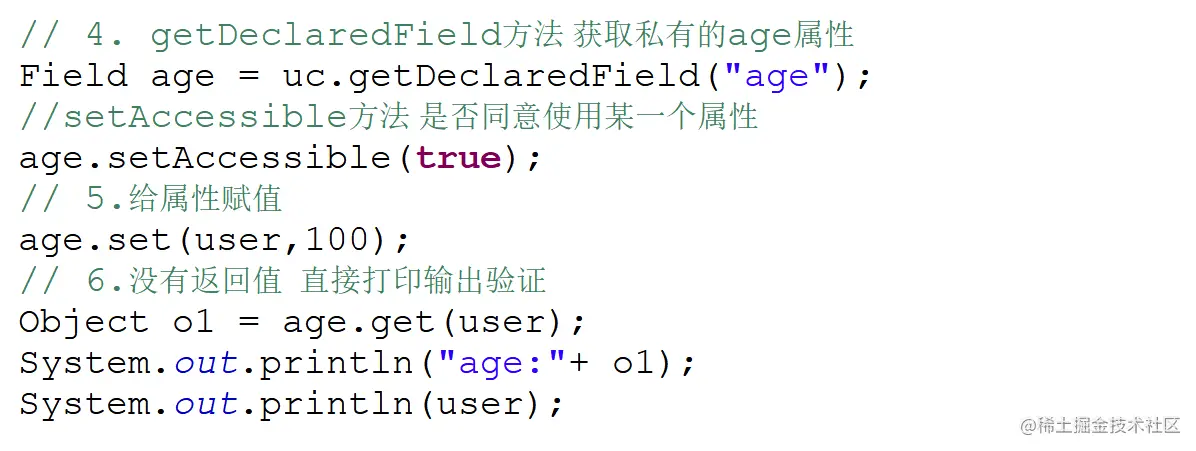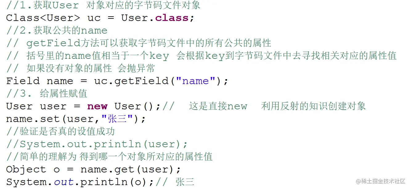 - 反射字段:getField。