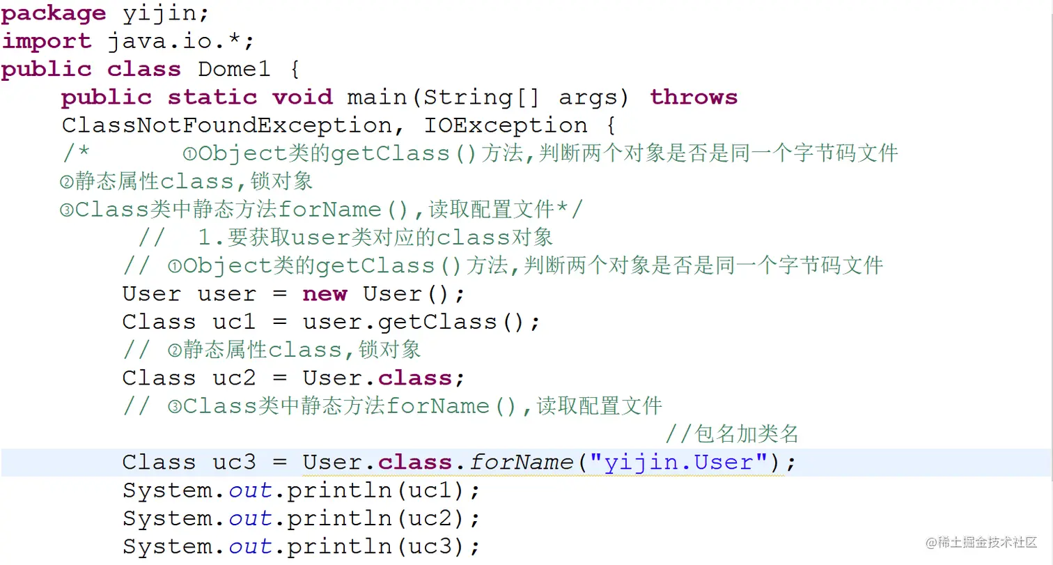 - (3)调用某个对象的getClass()方法,该方法是Object类的一个方法。