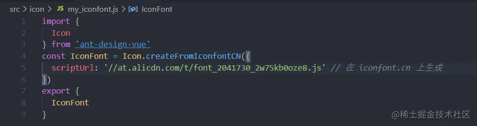 2、在项目中写入通用js文件(我是放入src下icon中的my_iconfont.js中),scriptUrl的值就是刚才复制的代码