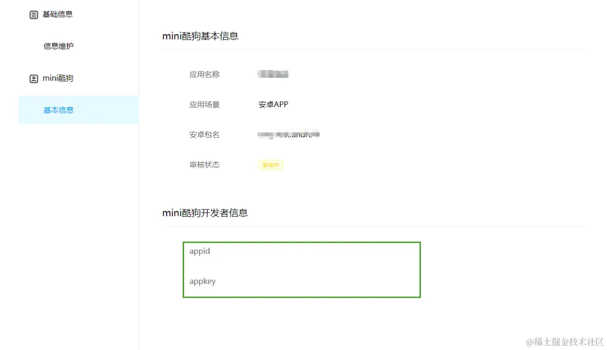 5、填写完成后只需要等待酷狗的管理人员审批(一般工作日24小时内会审批),审批通过就会分配给你一个appid和appkey。 拿到appid和appkey就可以结合开发文档进行开发了
