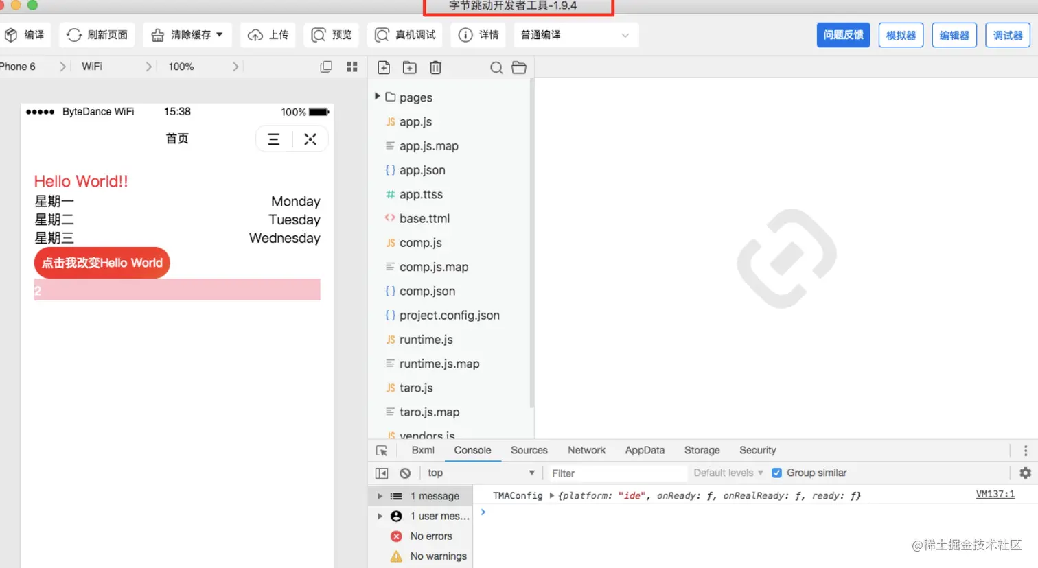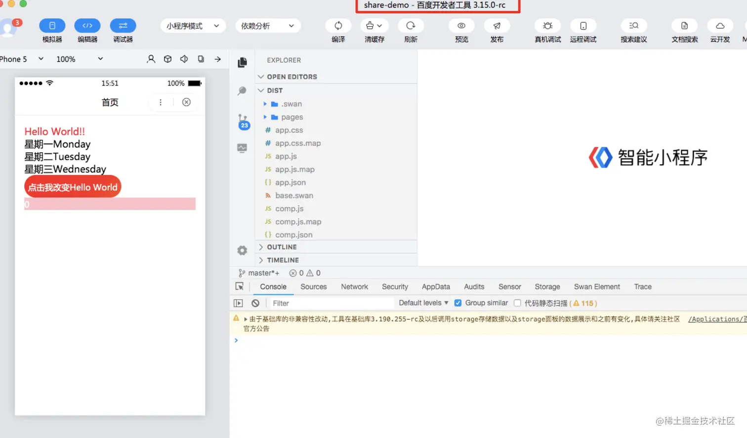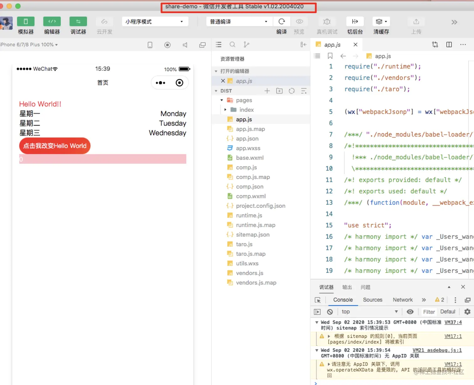 - 执行完如上命令之后,会把代码转换成小程序端可运行代码在dist目录下