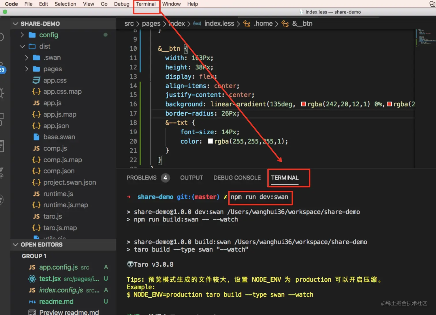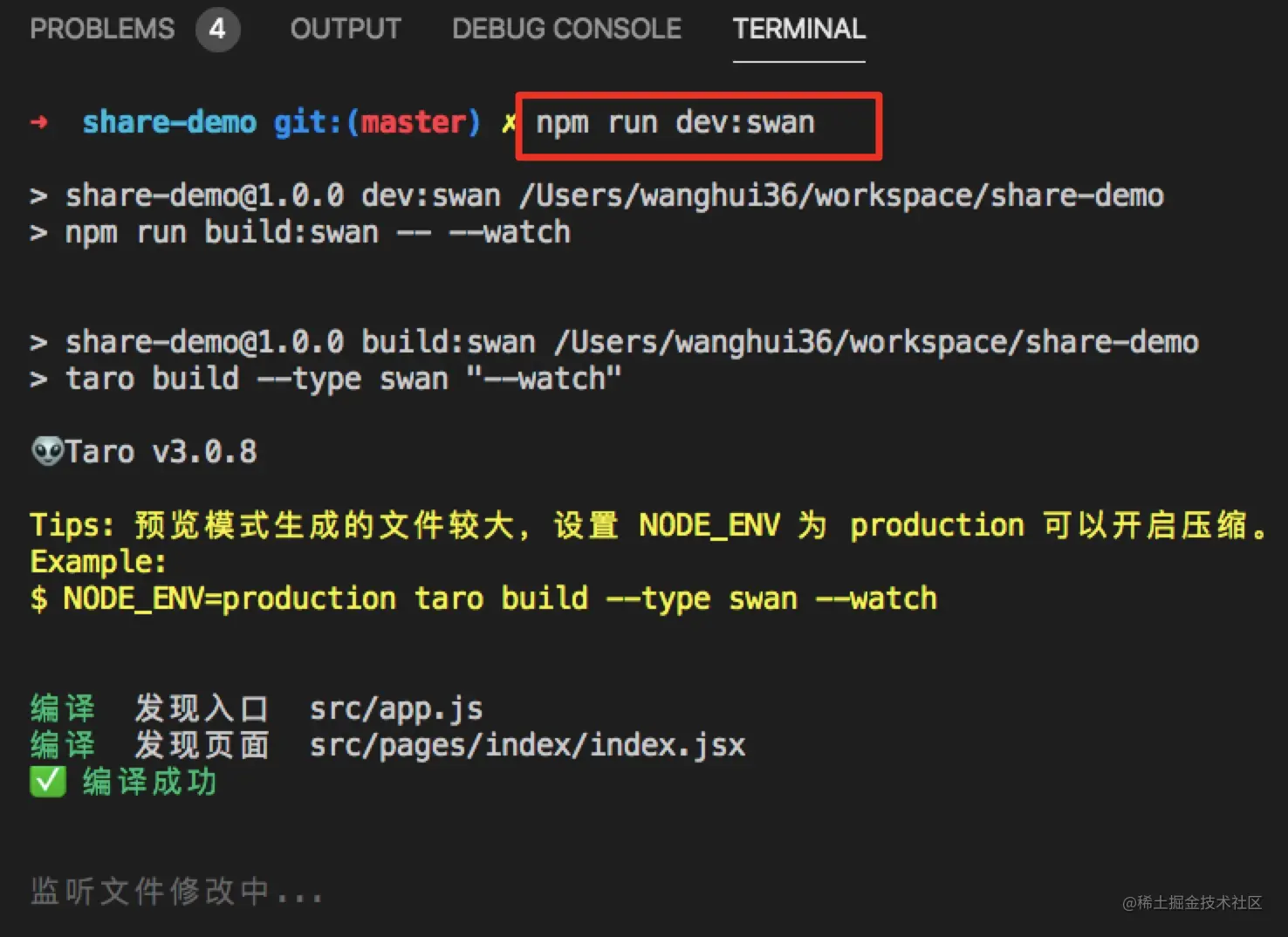 npm run dev:swan