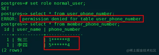 grant all on member_phone_number to normal_user;