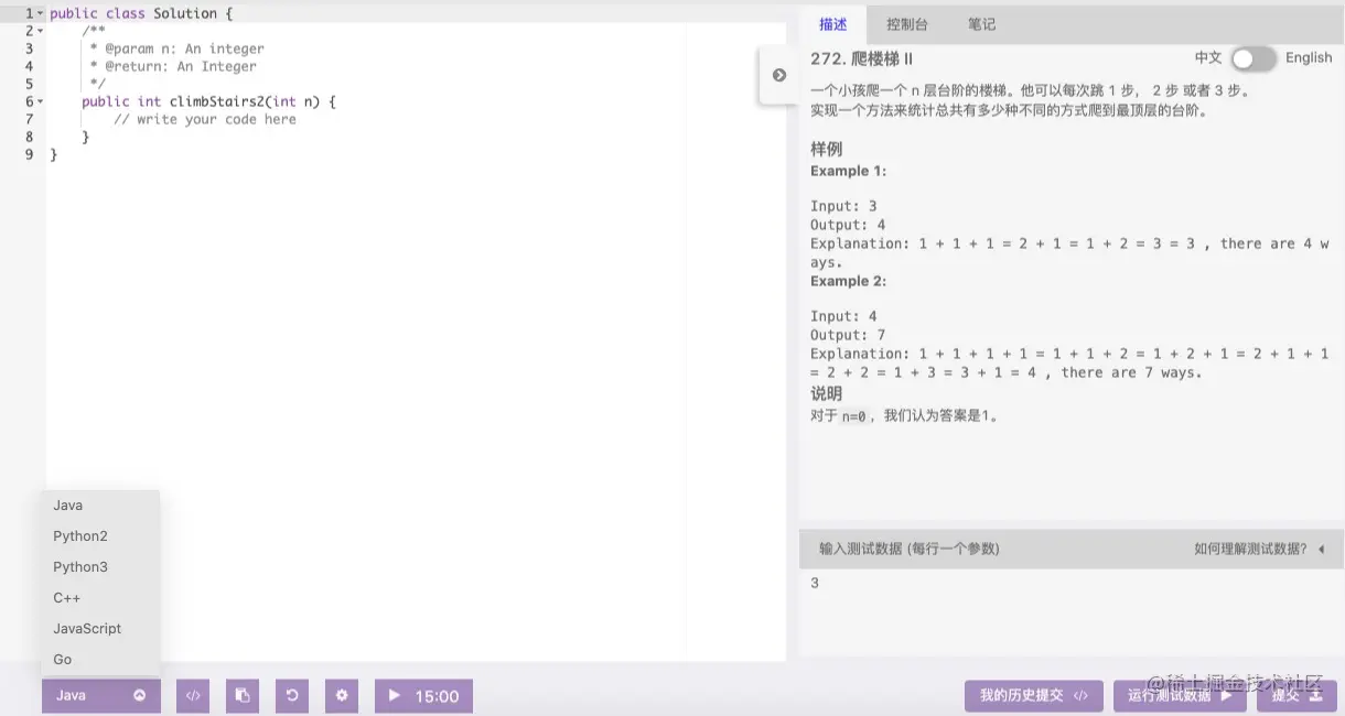 2、支持多种语言,LintCode自动评测,直接反馈代码能力
