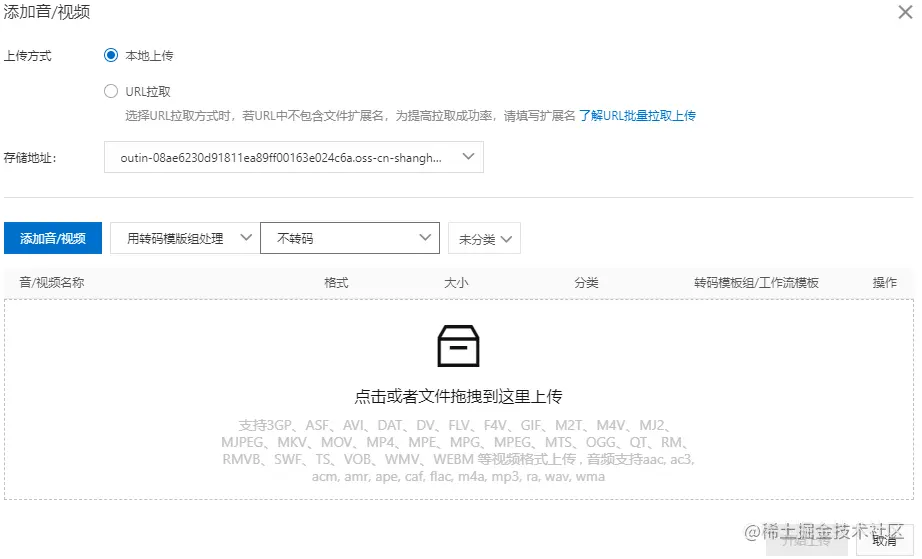 templateGroupId: 你配置的转码模板组id #转码模板组id
