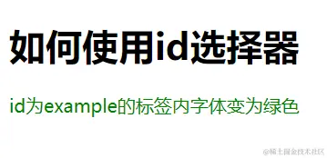 <div id="example">id为example的标签内字体变为绿色</div>