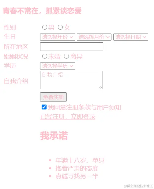 尝试利用通配符选择器把注册页面变成粉红色。