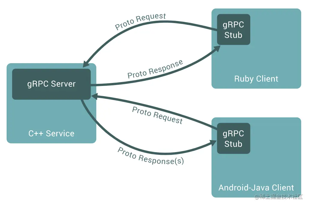 目前支持gRPC的语言有Golang, Java, Python, c++, c# ...,gRPC的文档也很完善,参考这里grpc.io/docs/langua… 可以查看具体语言的demo。