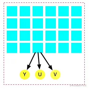 对于YUV图像来说,并不是每个像素点都需要包含了Y、U、V三个分量,根据不同的采样格式,可以每个Y分量都对应⾃⼰的UV分量,也可以⼏个Y分量共⽤UV分量。