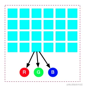 RGB三个字母分别代表了红(Red)、绿(Green)、蓝(Blue)、三种颜色,这三种颜色被称为三原色,通过将这三个颜色以不同的比例相加,得到各种不同的颜色。